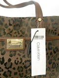 $149 Calvin Klein Women's Teodora Leopard Animal Print Shoulder Tote Bag Brown