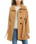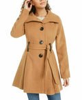 $159 NEW Madden Girl Women Belted Drama Skirted Coat Beige Camel Size S