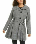 $159 NEW Madden Girl Women Belted Drama Skirted Coat Black Gray Plaids Size M