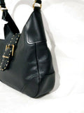 $298 MICHAEL KORS Women's Lillian Black Leather Gold Stud Buckle Shoulder Bag