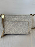 Calvin Klein Women's Hudson Top Zip Signature Crossbody Shoulder Bag Beige