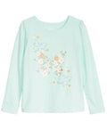 Epic Threads Girls Aqua Blue Graphic Butterfly Long Sleeve Blouse Top Size 6X