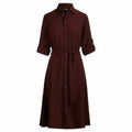 Lauren Ralph Lauren Karalynn Long Sleeve Beltd Collar Button Dress Shirt Wine 16