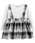 New Carters Baby Girls 2 Piece Gray White Check Jumper Set SIZE 18 Months