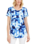 New JM Collection Women's Short Sleeve Blouse Top Tie Dye Blue Size Petite L