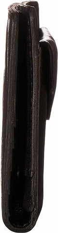 Exterior features signature antique brass-tone hardware, burned edge finish, heavy handcrafted stitching and 1 front pocket with removable card sleeve with 6 card slots