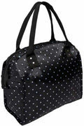 New Kathy Ireland Leah Wide Mouth Lunch Fabric Tote in Black White Polka Travel