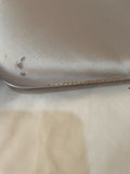 Satin clutch featuring a crystal-embellished clasp.