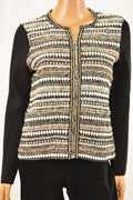 Charter Club Women's Metallic Black Zip-Front Textured Cardigan Shrug Small S