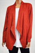 JM Collection Women's Open-Front Stretch Red Draped Suede Cardigan Shrug Top L