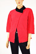 JM Collection Womens Wool Red Cross Over Velvet-Trim Cardigan Shrug Top Petite L