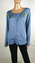 Karen Scott Women Long Sleeve Blue Embroidery Button Cardigan Sweater Plus 1X