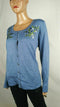 Karen Scott Women Long Sleeve Blue Embroidery Button Cardigan Sweater Plus 2X