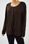Karen Scott Women Long Slv Cotton Brown Open Front Sweater Cardigan Shrug Top M