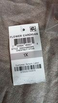 Karen Scott Women's Long Sleeve Beige Embroidery Button Cardigan Sweater Plus 1X