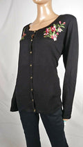 Karen Scott Women's Long Sleeve Black Embroidery Button Cardigan Sweater Plus 1X