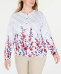Karen Scott Women's Long Sleeve Button Front Gingham Flowers Cardigan Plus 0X
