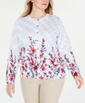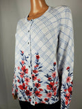 Karen Scott Women's Long Sleeve Button Front Gingham Flowers Cardigan Plus 1X
