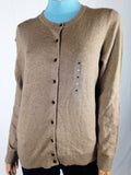 Karen Scott Women's Long Sleeve Front Button Cardigan Sweater Beige Crew Neck M