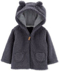 This is guaranteed authentic. Brand: Carters Condition: New With Tags! A cute layer over baby's sweet looks, this sherpa cardigan features an easy zip up the front and 3D ears on the hood.