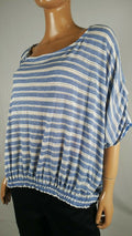 $128 Free People Women Dolman Sleeve Blue Striped Square Neck Blouse Top M