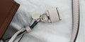 • Pale shiny gold-tone hardware, logo, lock charm & 1 back magnetic-snap pocket
