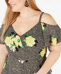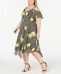$129 INC CONCEPTS Women Cold-Shoulder Midi Dress Gingham Bouquet Print Plus 24W