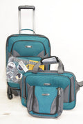 - Top and side carry handles on uprights, top carry handles on tote and toiletry kit