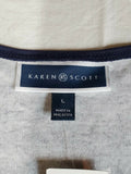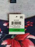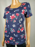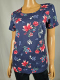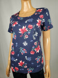 $69 Karen Scott Women Short Sleeve Scoop Neck Blue Knit Floral Blouse Top Size L