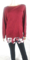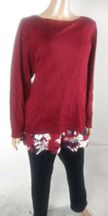 Charter Club Women's Long Sleeve Red Printed Hem Tunic Pullover Sweater Plus 3X