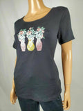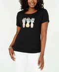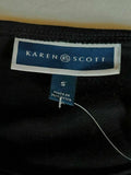 Karen Scott Women Short Sleeve Scoop Neck Black Embroidery Blouse Pullover Top S