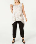 New Alfani Women's Scoop-Neck Sleeveless Beige Printed Asymmetrical Hem Plus 2X