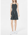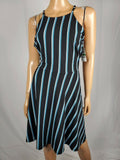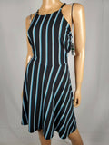 New BAR III Womens Sleeveless Blue Black Striped Fit Flare Halter Dress Size L
