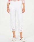 NEW Charter Club Women White Stretch Lace Hem Capri Cropped Crochet Pants Size 8