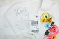 New DOE Women's Short Sleeve White Floral Print Lace Neck Blouse Top Size L