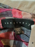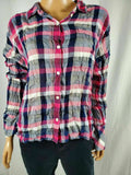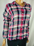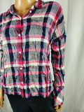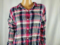 Sanctuary Women Check Plaids Hi Low Pink Multi Button Shirt Long Sleeve Top L