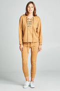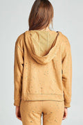 Women's Long-Sleeves Yellow/Mustard grommet distressed slub french terry hoodie